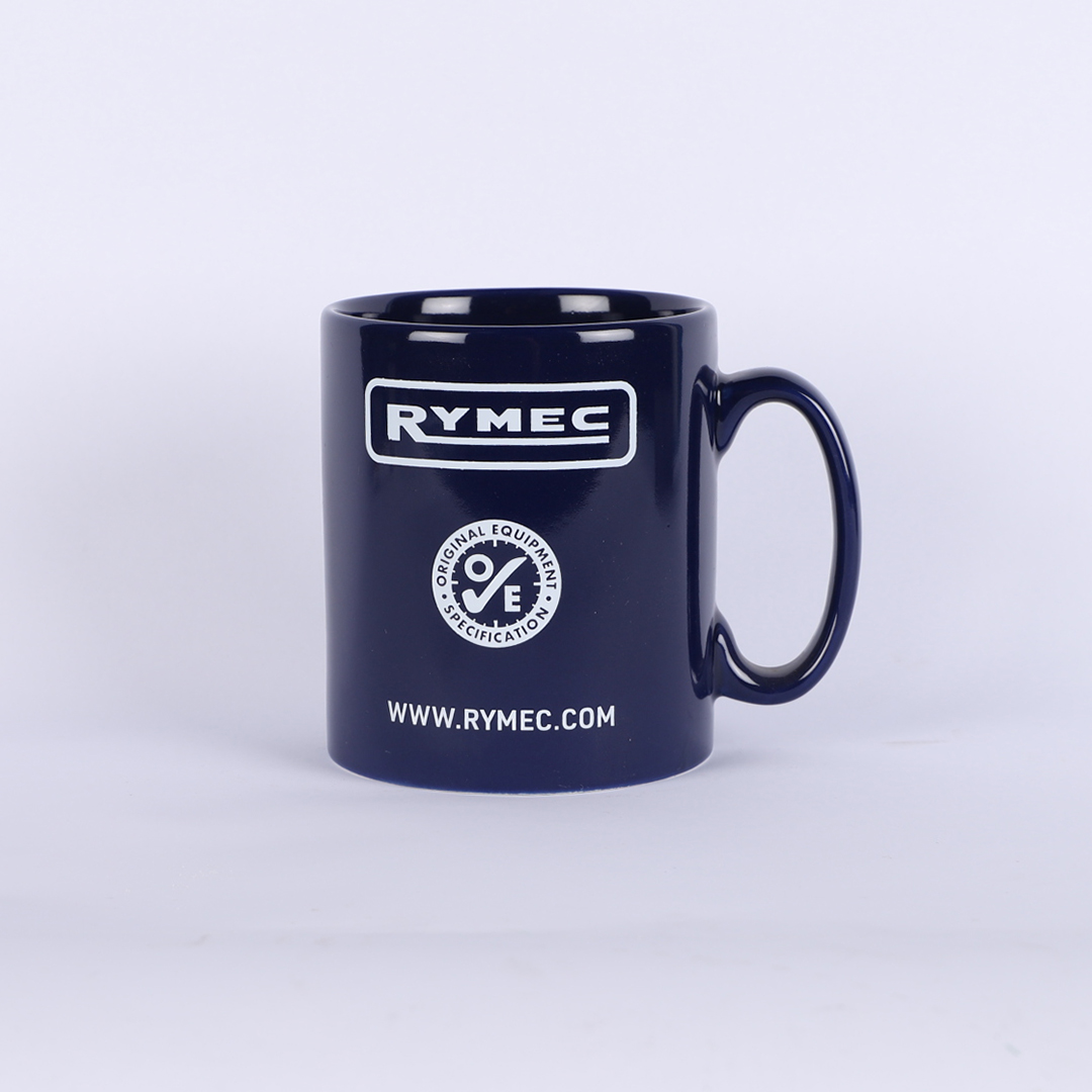 Navy Blue Mug with white branded RYMEC logo, OE quality logo and website